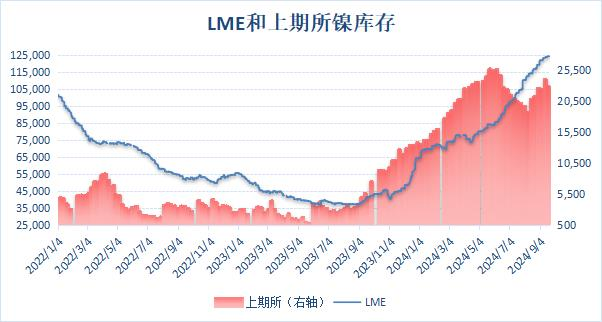 上期所公布的數(shù)據(jù)顯示,9月20日當(dāng)周,滬鎳庫存有所回落,周度庫存減少4.87%至22,845噸。